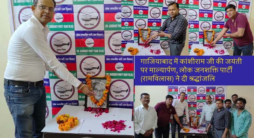 गाजियाबाद में बहुजन समाज के महानायक माननीय कांशीराम जी की जयंती के अवसर पर लोक जनशक्ति पार्टी (रामविलास) द्वारा श्रद्धांजलि कार्यक्रम आयोजित किया गया। यह कार्यक्रम प्रदेश अध्यक्ष (पश्चिमी उत्तर प्रदेश) पवन वर्मा के निर्देशानुसार प्रदेश प्रचार मंत्री (पश्चिमी उत्तर प्रदेश) अमित कुमार अग्रवाल द्वारा उनके पार्टी कार्यालय पर आयोजित किया गया।