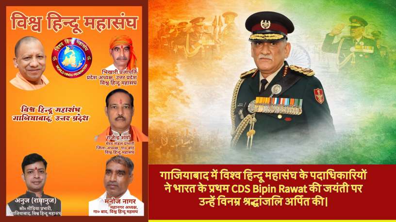 विश्व हिन्दू महासंघ के कार्यकर्ताओं ने जनरल बिपिन रावत की जयंती पर उन्हें नमन करते हुए उनके आदर्शों पर चलने का संकल्प लिया।